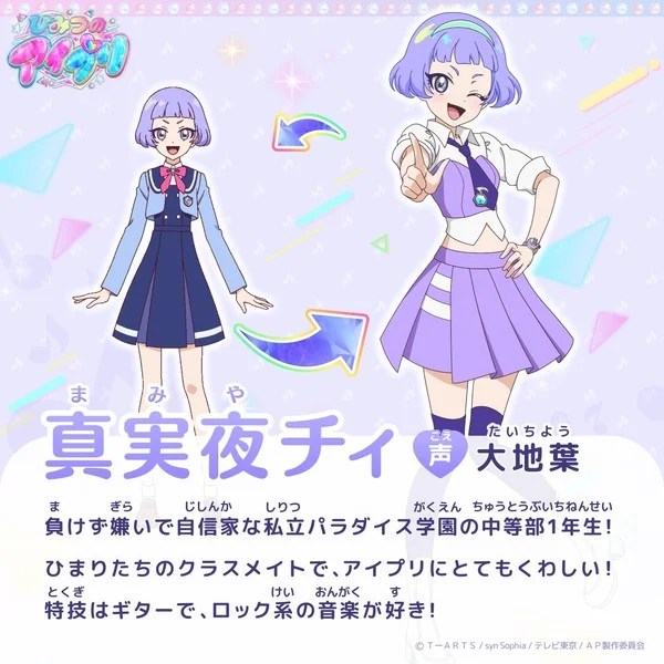 In addition to the anime, tie-ins include arcade game machines and toys. Himitsu no AiPri and AiPriVerse machines are set to launch on April 4, offering fans an immersive experience with live concert rhythm gameplay using cards.”