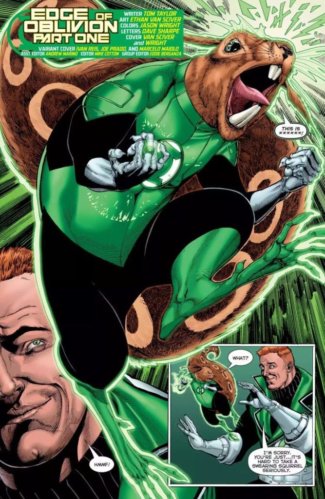 If you’re unfamiliar with the Green Lantern comics you might be wondering what the heck this has to do with the ring-slinging heroes, but one member of the GL Corps is, in fact, an anthropomorphic squirrel named Ch’p.